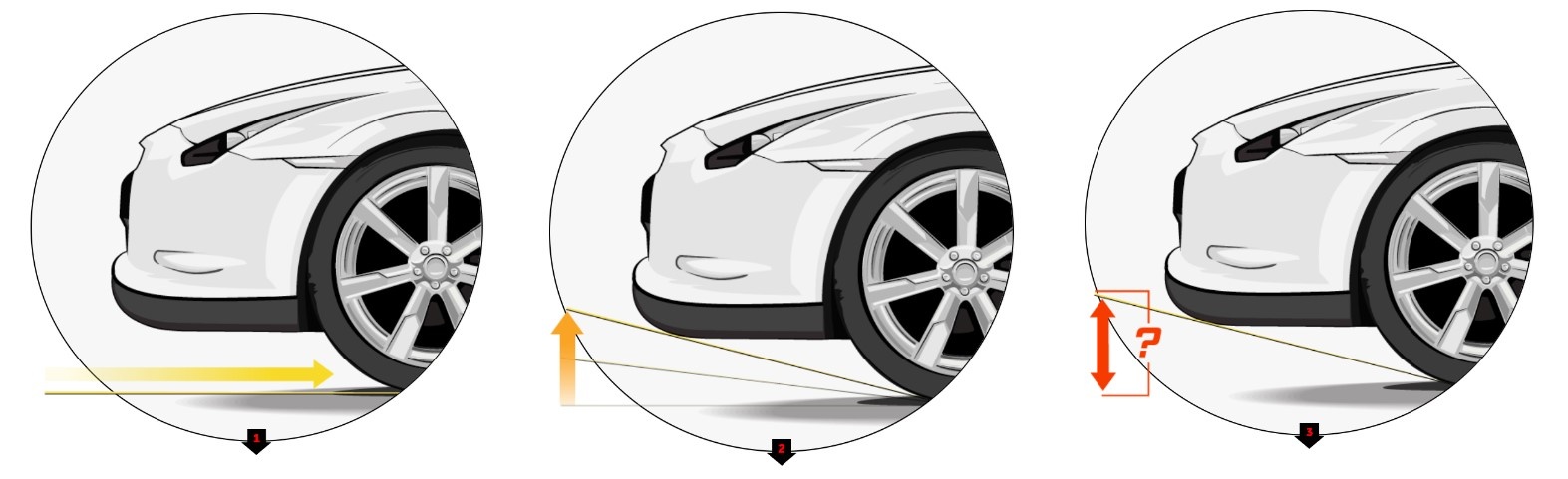 Dans le tableau ci-dessous, sélectionnez la hauteur la plus proche juste en dessous de votre hauteur mesurée et notez l'angle maximum de votre voiture.